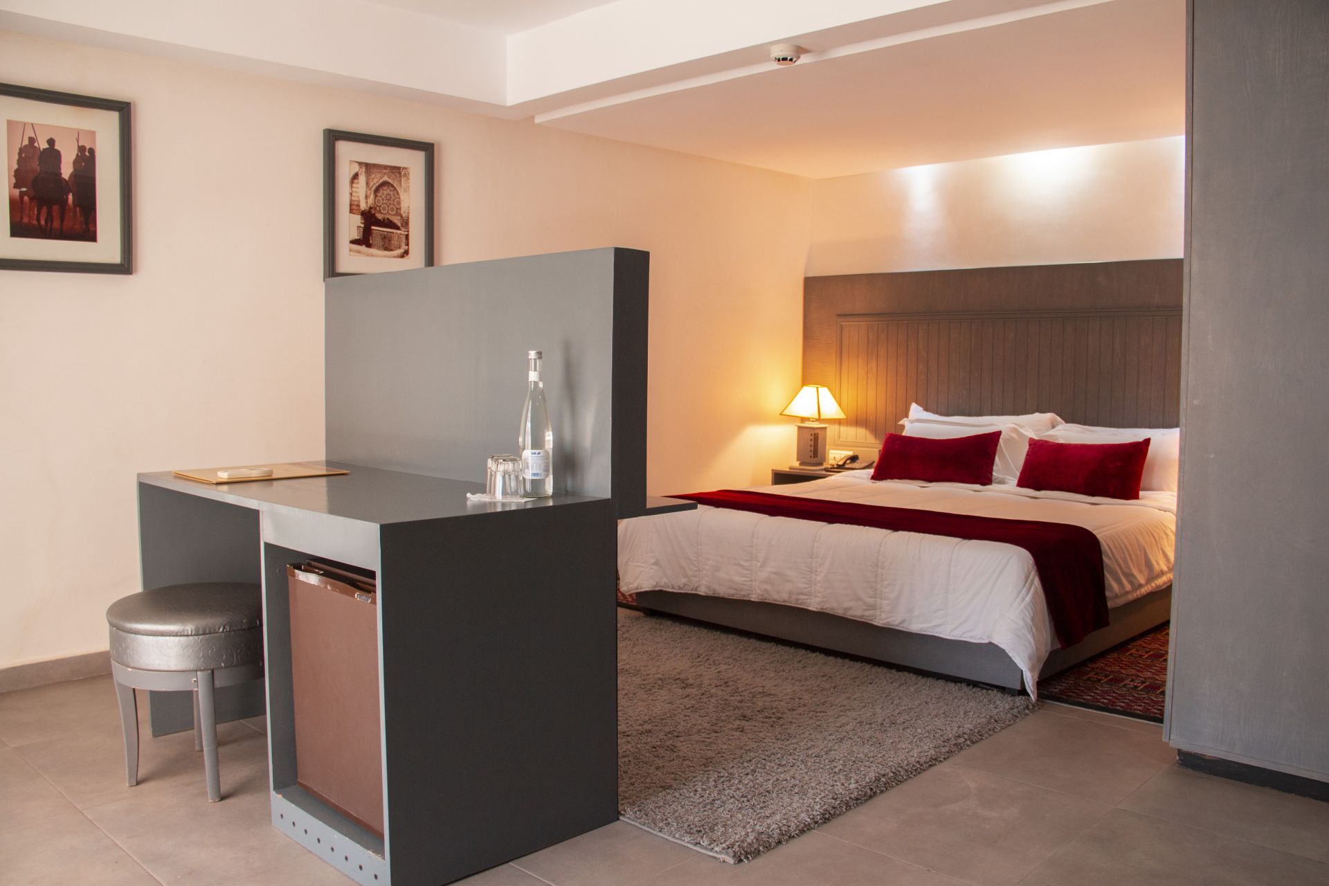 Description : Cette suite luxueuse et haut de gamme peut accueillir de une à 5 personnes, elle dispose d'une très grande surface et peut donner sur la ville ou sur la cour intérieure de l'hôtel.